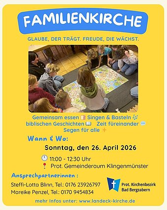 Die Familienkirche ist offen füralle, egal ob mit Kindern, als Großeltern, Paten, Alleinerziehende oder einfach neugierig. Niemand muss etwas „können“ – Mitmachen darf, wer möchte.